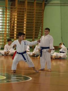 Po dużej dawce emocji związanej z turniejem dla najmłodszych przyszła kolej na wspólny trening maluchów, zawodników, instruktorów oraz rodziców, którzy na własnej skórze mogli się przekonać ile wysiłku, potu oraz zabawy przynosi trening ich dzieciom. Po krótkiej rozgrzewce sensei Włodzimierz Rygiert 4 Dan przeprowadził szkolenie związane z technikami używanymi w Karate, po czym uczestnicy dobrali się w pary, by w formie zabawy zapoznać się z taktyką walki oraz samoobrony. Jak się okazało, dla rodziców nie były one znane, chociaż trzeba przyznać, że poradzili sobie z zadaniami stawianymi przez sensei Włodka.